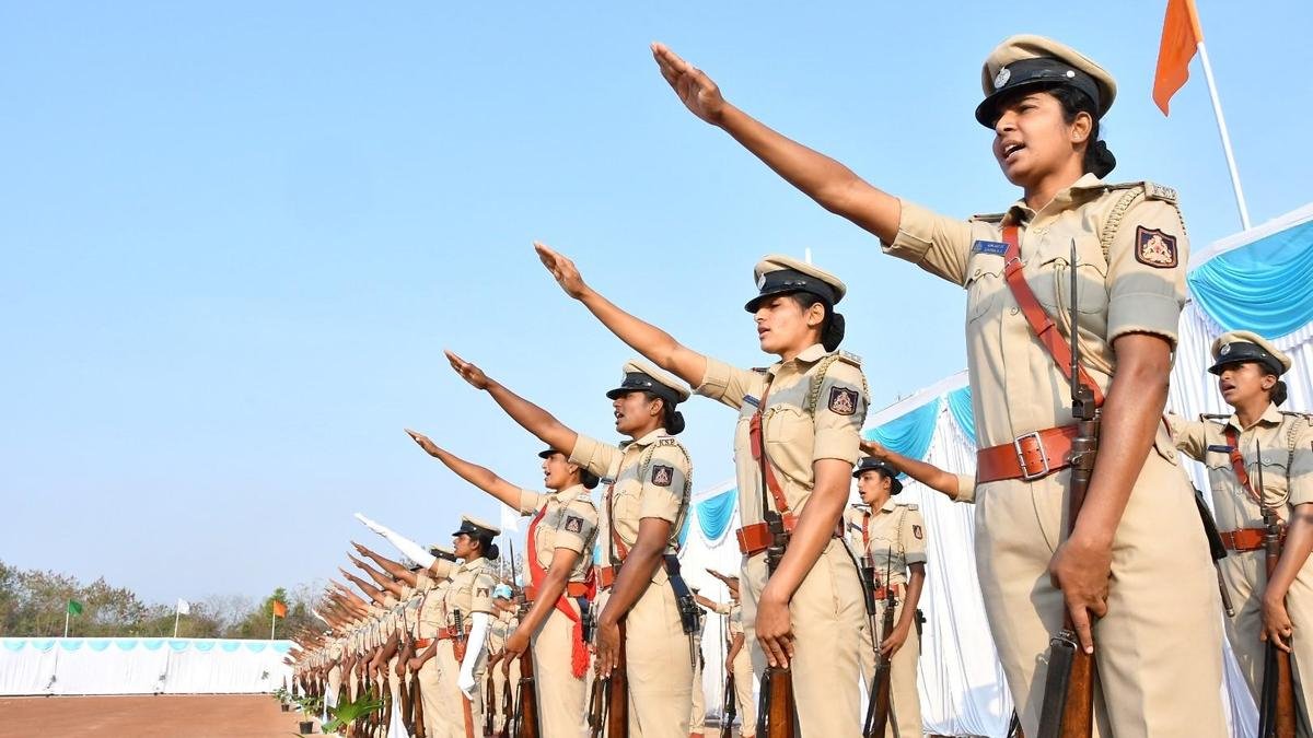 कलबुर्गी में पुलिस प्रशिक्षण केंद्र में पासिंग आउट परेड के दौरान शपथ लेते पुलिस कर्मियों की एक फ़ाइल तस्वीर। | फोटो साभार: अरुण कुलकर्णी