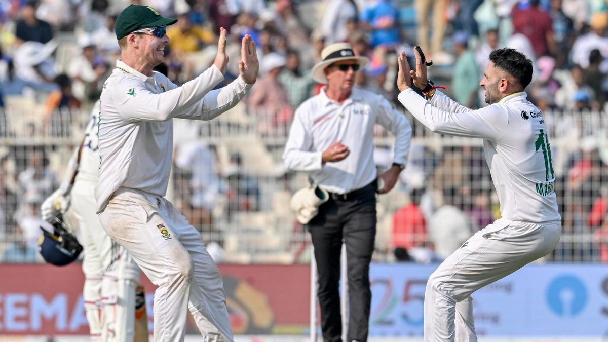 कोलकाता टेस्ट में दक्षिण अफ़्रीकी स्पिनर साइमन हार्मर और केशव महाराज ने मिलकर 11 विकेट लिए. | फोटो साभार: केआर दीपक