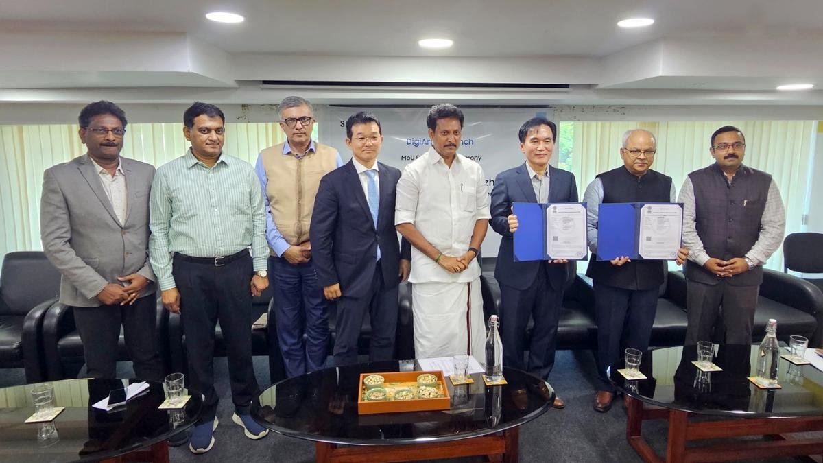 इस पहल की शुरुआत बुधवार को चेन्नई में स्कूल शिक्षा मंत्री अंबिल महेश पोय्यामोझी ने सैमसंग चेन्नई प्लांट के अध्यक्ष एसएच यून और यूएन जीसीएनआई के कार्यकारी निदेशक रत्नेश झा की उपस्थिति में की। | फोटो साभार: विशेष व्यवस्था