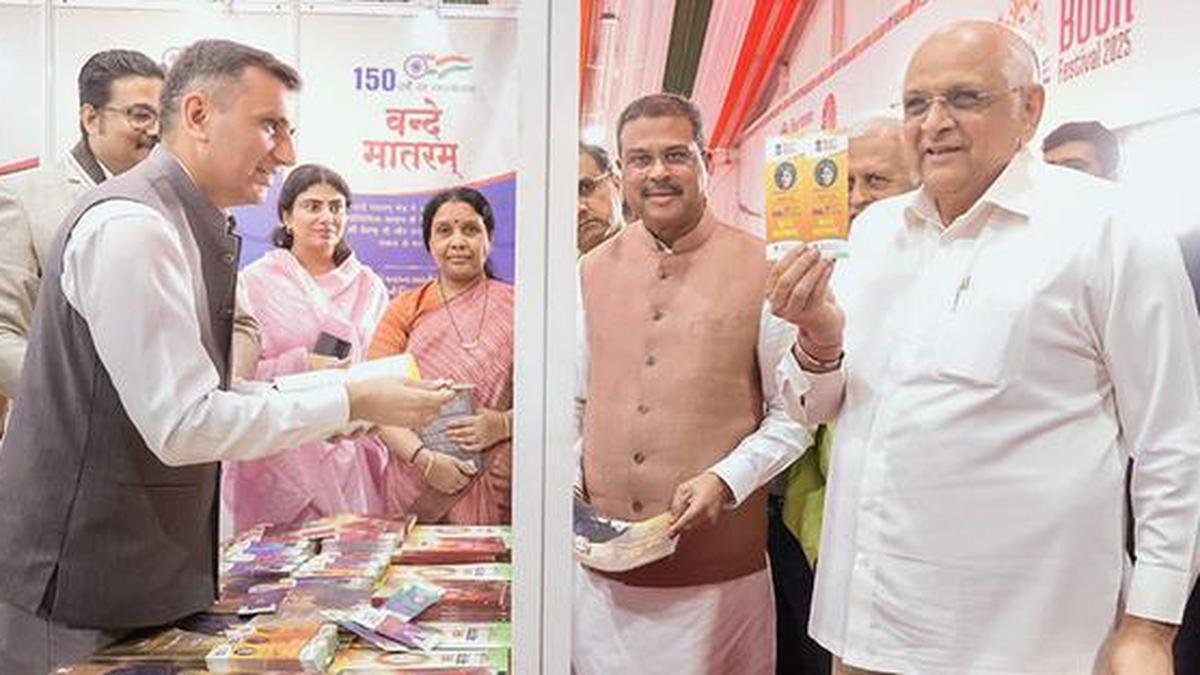 गुरुवार (13 नवंबर, 2025) को अहमदाबाद के रिवरफ्रंट इवेंट सेंटर में उद्घाटन के बाद अहमदाबाद इंटरनेशनल बुक फेस्टिवल 2025 में गुजरात विद्यापीठ स्टॉल पर केंद्रीय मंत्री धर्मेंद्र प्रधान, गुजरात के मुख्यमंत्री भूपेन्द्र पटेल के साथ। | फोटो साभार: एएनआई