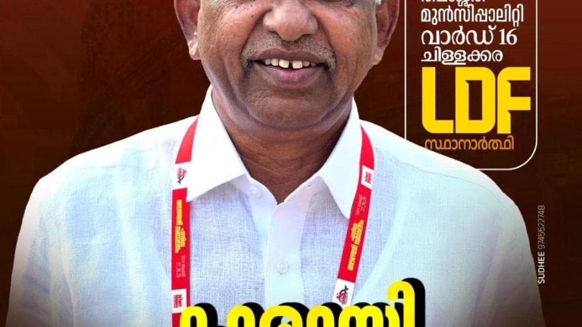 सीपीआई (एम) नेता करयी चंद्रशेखरन का एक चुनावी पोस्टर। | फोटो साभार: व्यवस्थित